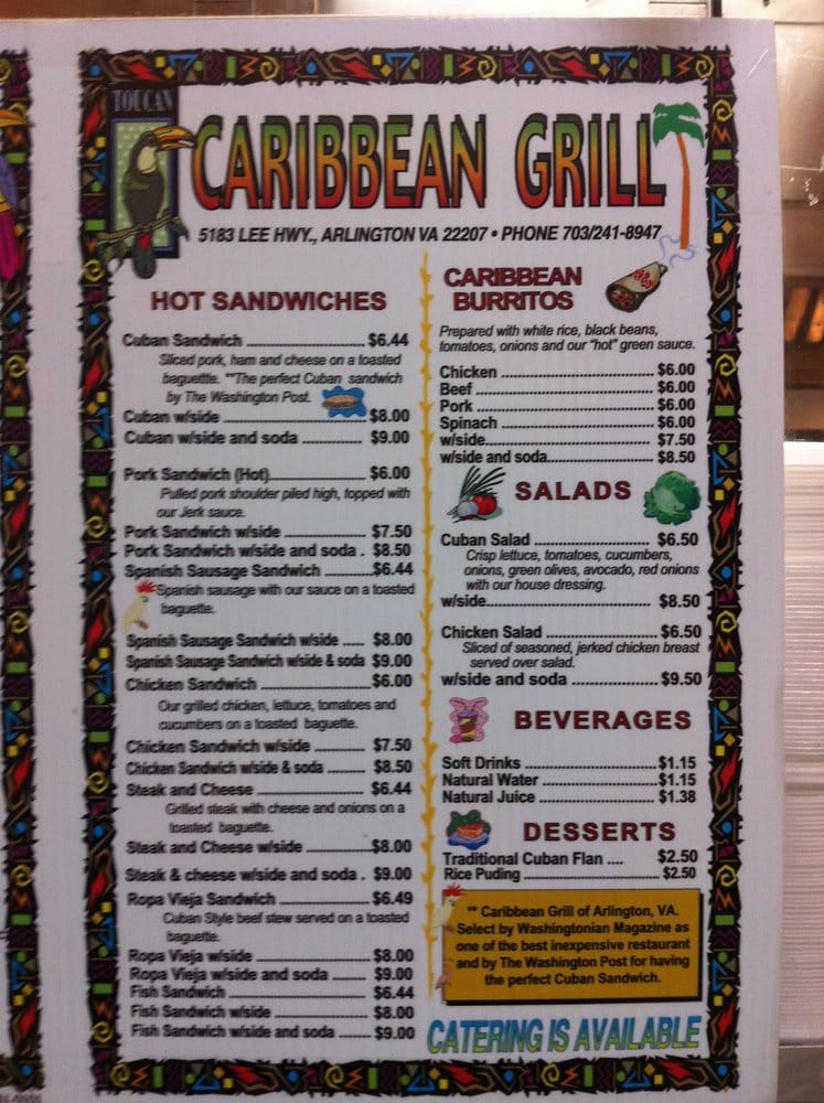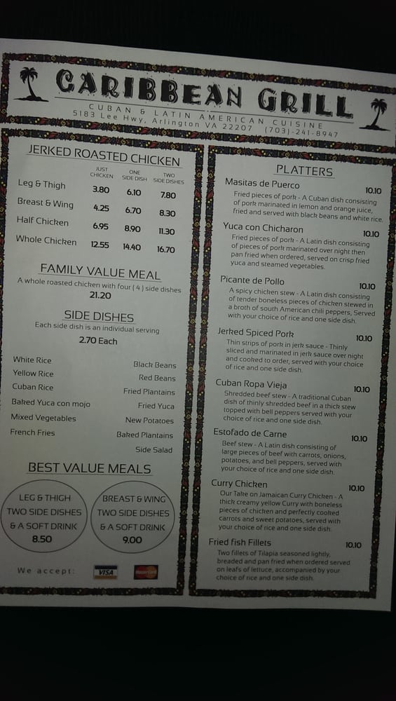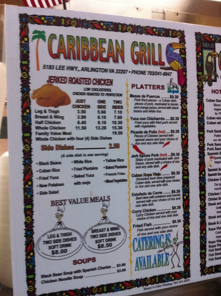 Caribbean Grill, located in Arlington, VA, offers a delightful fusion of Cuban, Caribbean, and Latin American cuisine. Known for its delicious rotisserie chicken, rice and beans, and mouthwatering dipping sauces, this restaurant has garnered rave reviews from loyal customers. The menu features a variety of dishes including yucca, yellow rice with black beans, fried fish, and the traditional Cuban national dish. Customers praise the quick service, fair prices, and juicy, flavorful chicken. The casual atmosphere, outdoor seating, and ample parking make it a convenient and enjoyable dining experience. With options for takeout, delivery, catering, and even reservations, Caribbean Grill caters to every dining need. Visit this hidden gem to savor authentic flavors that will leave you craving for more.